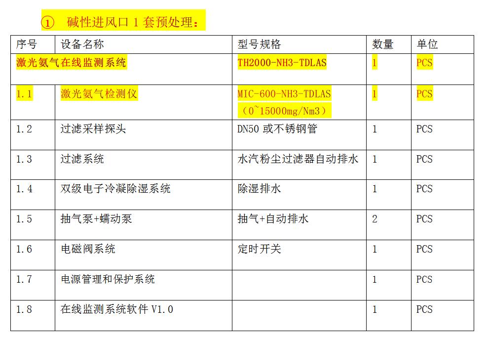 在線監(jiān)測(cè)預(yù)處理系統(tǒng) 1套(內(nèi)含對(duì)應(yīng)氣體檢測(cè)儀1臺(tái))